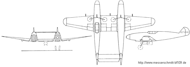 leichter Zerstörer und leichter Jäger gebaut werden. Die Maschine sollte aus den Erfahrungen mit der Bf 109 und der Me 209 kontruiert werden und der Fw 190 D-9 konkurenz machen. |
